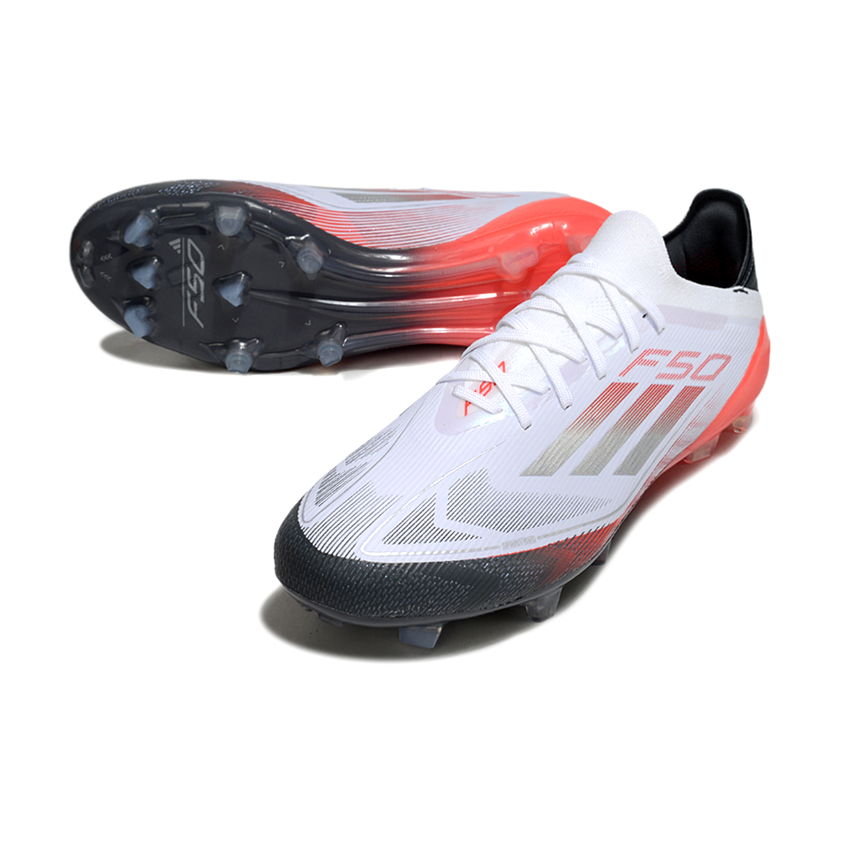 Chuteira Campo Adidas F50 FG Branca, Vermelha e Preto