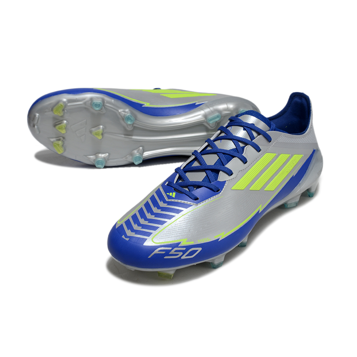 A Adidas F50 FG Prata, Azul e Verde é a escolha ideal para quem busca não só performance, mas também um visual impactante. Com a combinação de prata, azul e verde, essa chuteira oferece um estilo vibrante e moderno, perfeito para quem quer se destacar no campo enquanto garante uma performance de alta qualidade.