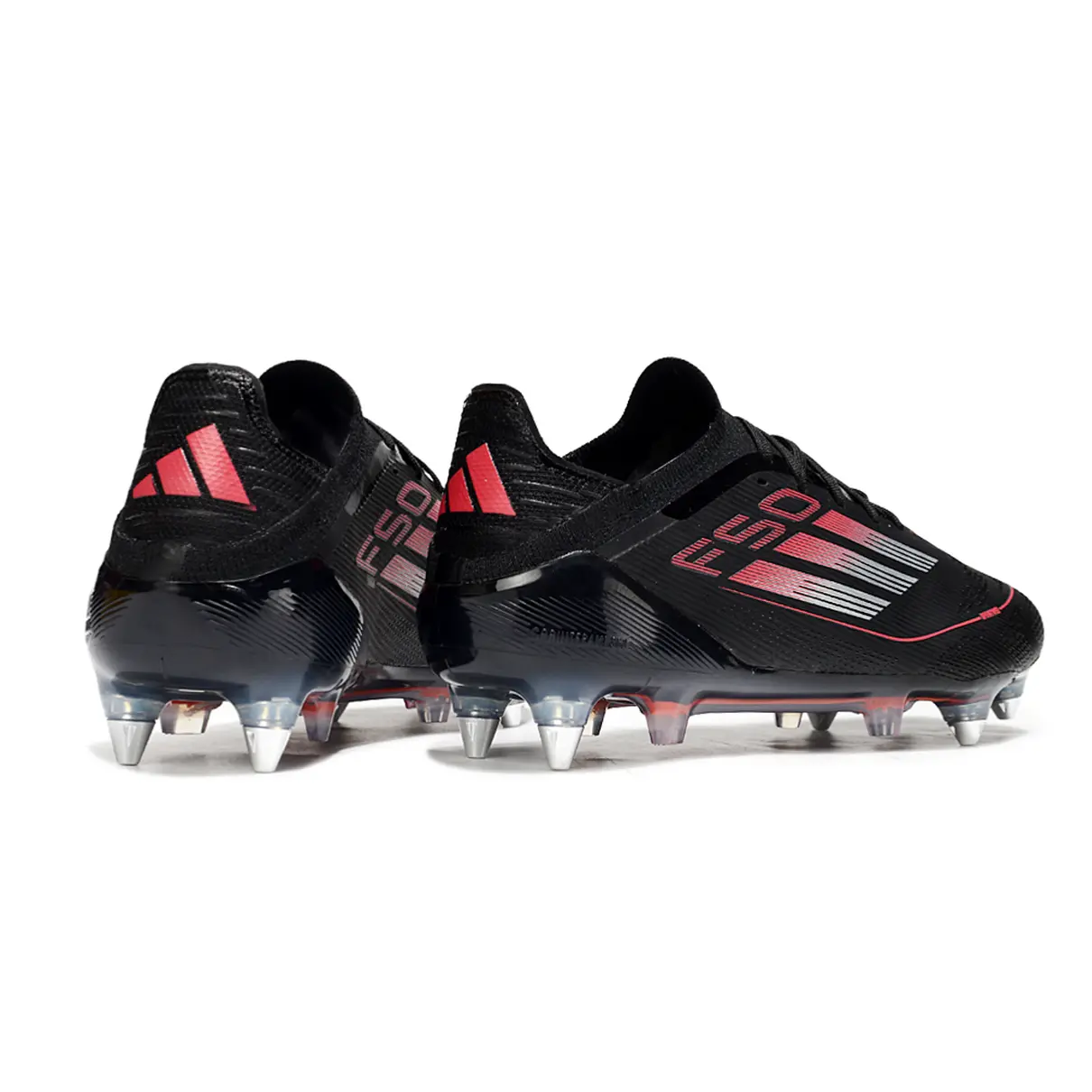 O cabedal sintético texturizado garante controle preciso da bola em alta velocidade, enquanto as travas de alumínio removíveis proporcionam tração poderosa, ideal para explosões, dribles curtos e estabilidade mesmo em terrenos úmidos. O contraste entre o preto sólido e o vermelho vibrante reforça o estilo imponente da linha F50.
