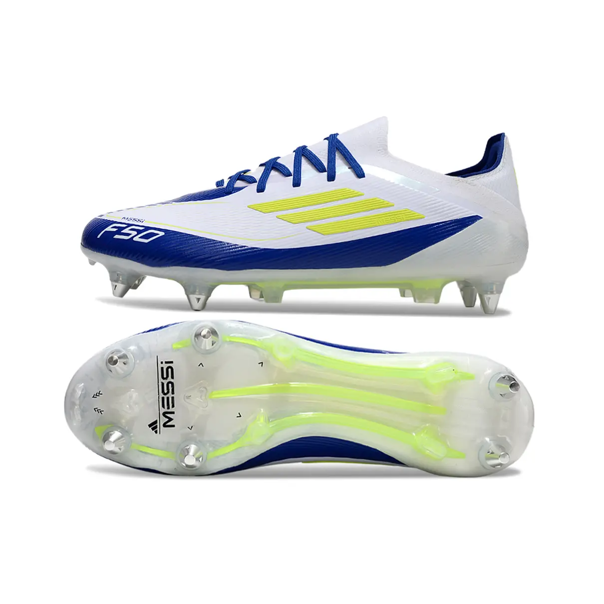 A lendária Adidas F50 está de volta com cravos de alumínio ⚙️, perfeita para gramados naturais e jogos de alta intensidade! O visual branco com detalhes em amarelo e azul ???????? mistura nostalgia e ousadia na medida certa.