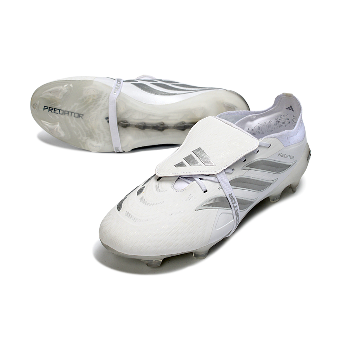 A Adidas Predator Tongue 26 Elite FG foi projetada para jogadores que buscam máximo controle, precisão e desempenho elevado em campo. Um modelo clássico da linha Predator, unindo tecnologia avançada, conforto e um visual sofisticado nas cores branco e prata.