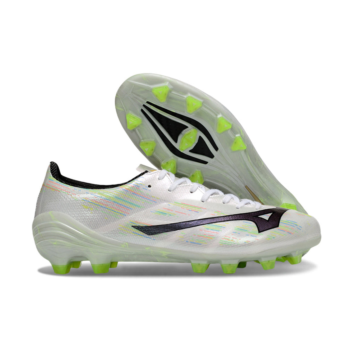 A Mizuno Alpha II FG Branco e Verde representa a combinação perfeita entre leveza, velocidade e precisão para atletas que exigem desempenho de elite nos gramados naturais.