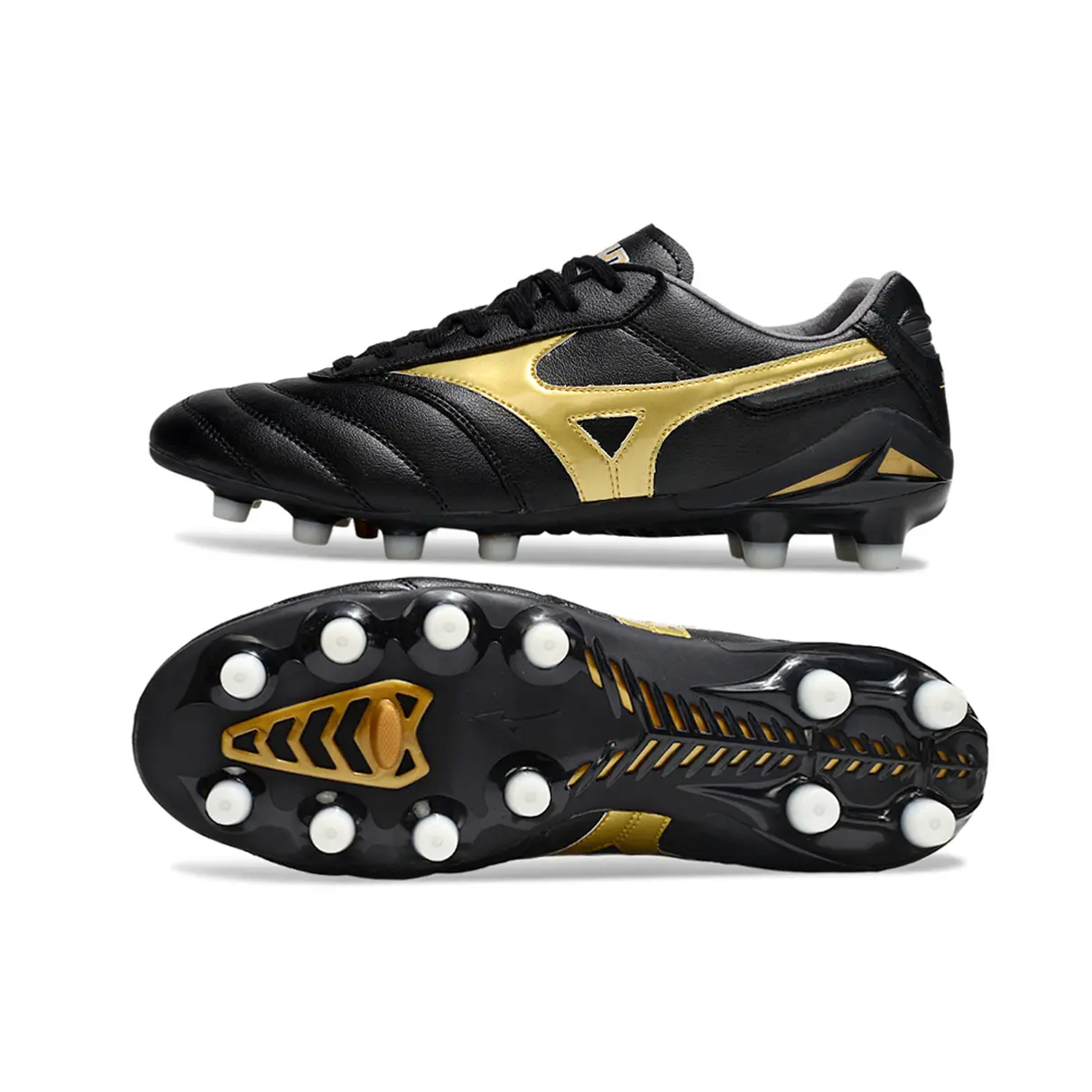 A Mizuno Morelia DNA FG “Aurum Pack” une tradição, conforto e performance em um visual sofisticado nas cores preta e dourada. Parte do exclusivo Aurum Pack, o modelo destaca-se pelo design premium, combinando elegância e tecnologia de alto nível.