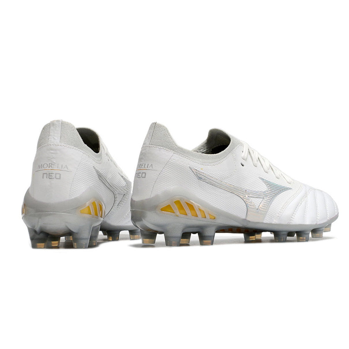Chuteira de Campo Mizuno Morelia Neo 3 FG Branca e Prata "Beta Shining"