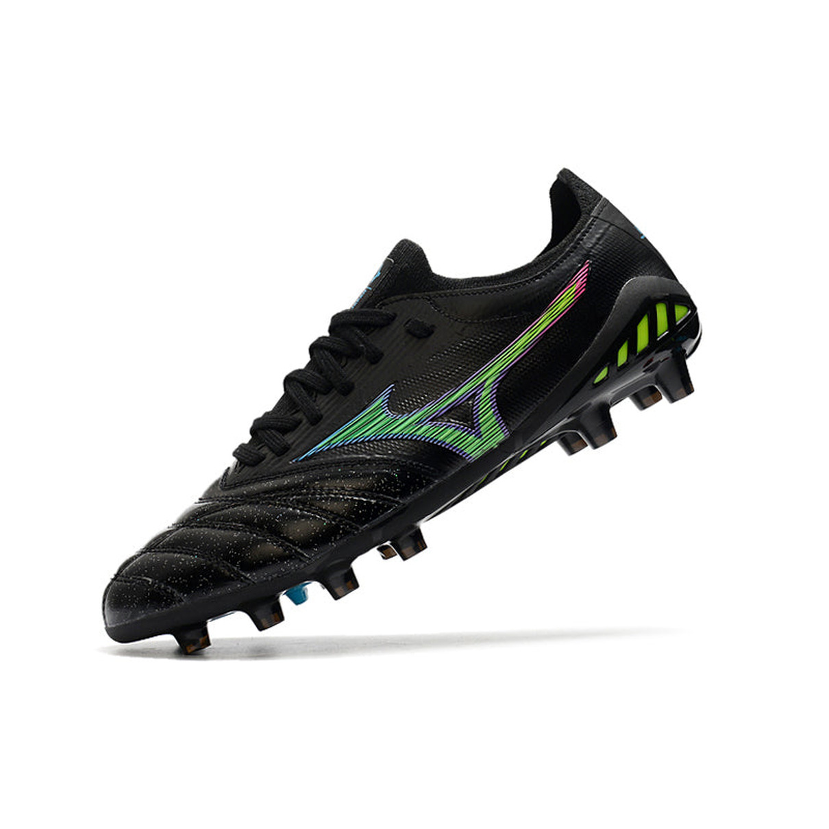 Se você é um jogador que valoriza estilo, desempenho e conforto, a Chuteira de Campo Mizuno Morelia Neo 3 FG na combinação de cores preta, verde e azul é a escolha perfeita para elevar o seu jogo a novos patamares. Domine o campo com confiança e estilo com esta chuteira de alta performance.