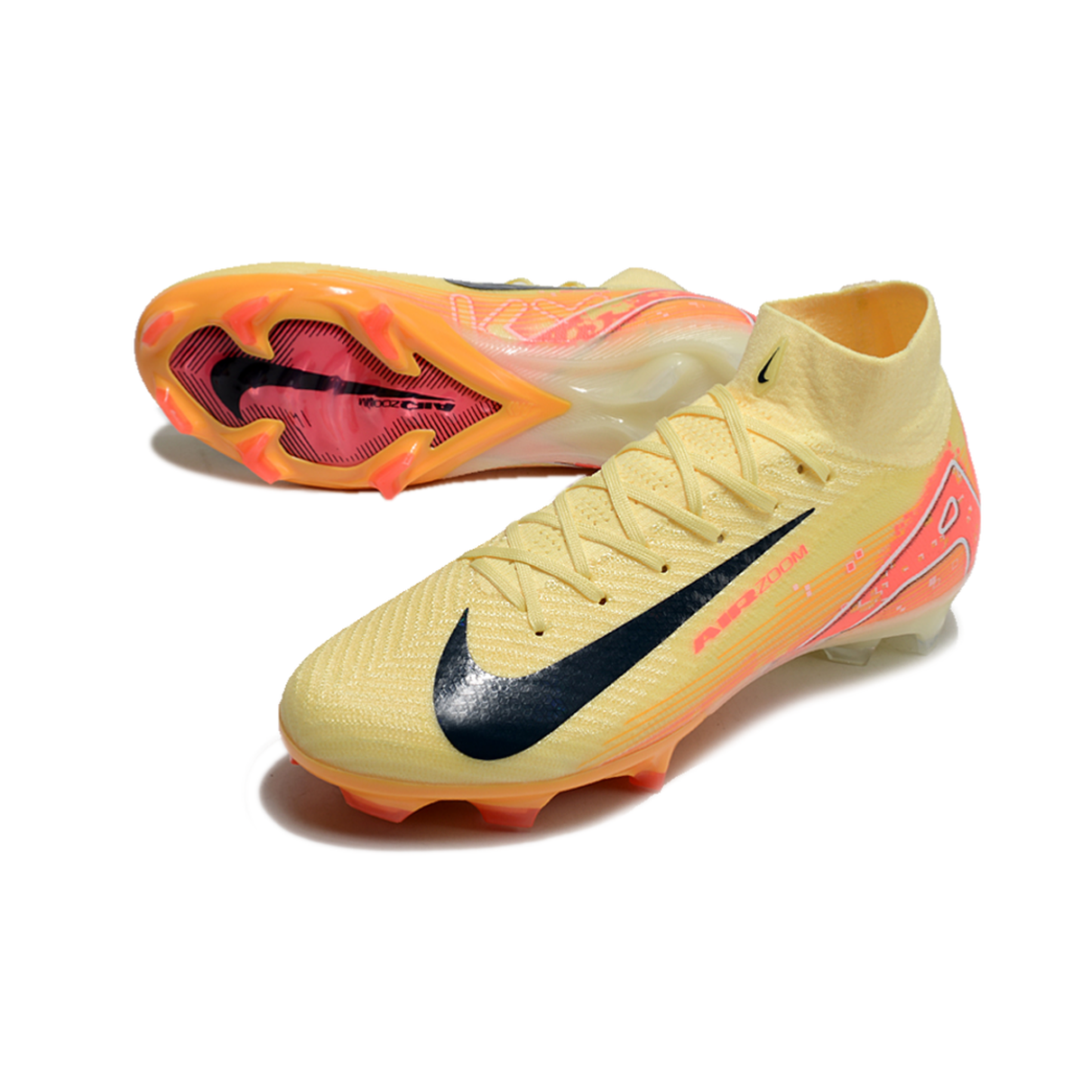 Acelere seu jogo com a Chuteira Nike Air Zoom Mercurial Superfly 10 Elite FG, uma verdadeira obra-prima que reflete a velocidade e o estilo do craque Kylian Mbappé. Com um design vibrante em amarelo e laranja, essa chuteira é feita para os jogadores que não têm medo de brilhar em campo.
