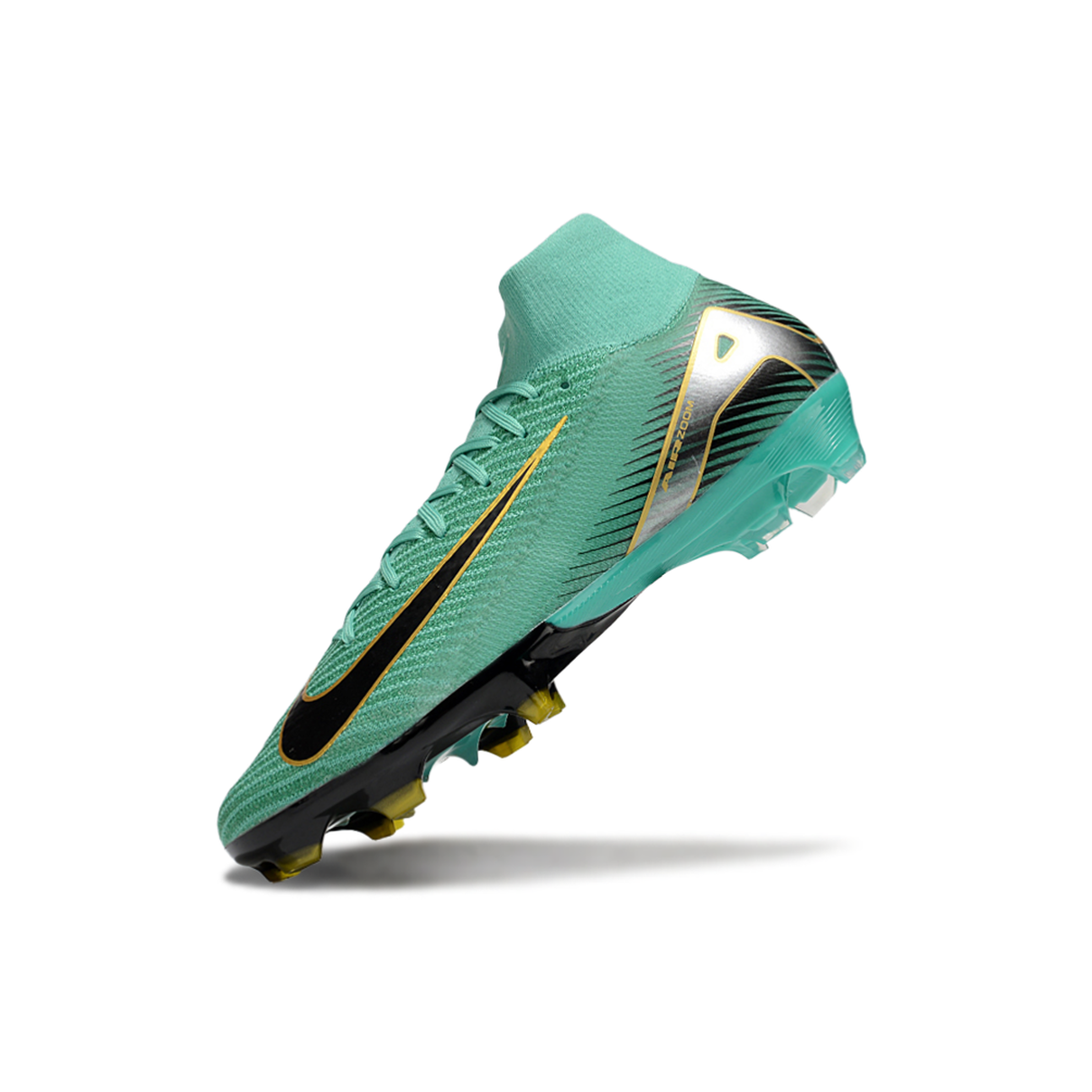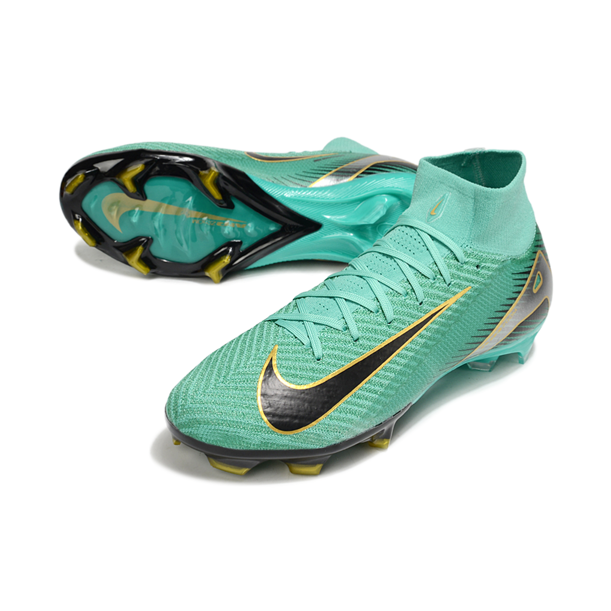 A Nike Air Zoom Mercurial Superfly 10 Elite FG Verde, Preto e Dourado é uma obra-prima em desempenho, inovação e design. Criada para jogadores de elite que buscam velocidade imbatível e controle absoluto, esta chuteira traz um visual impressionante que combina perfeitamente com sua performance de alto nível.