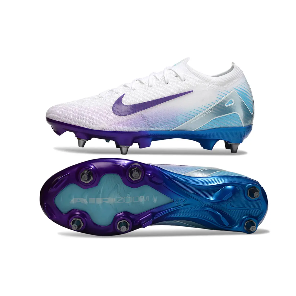 Chuteira Campo Nike Air Zoom Mercurial Vapor 16 Elite Trava Mista Branco, Roxo e Azul
