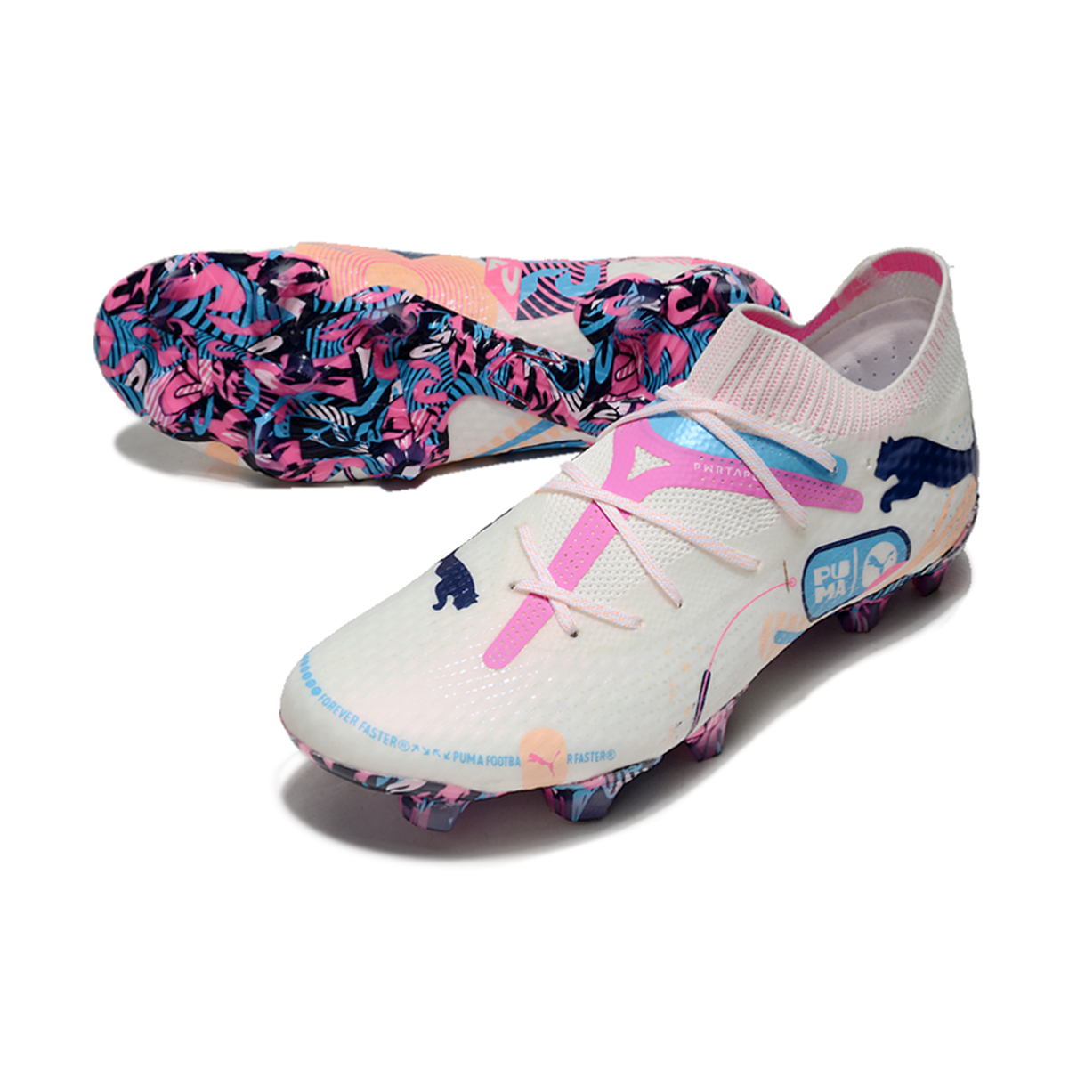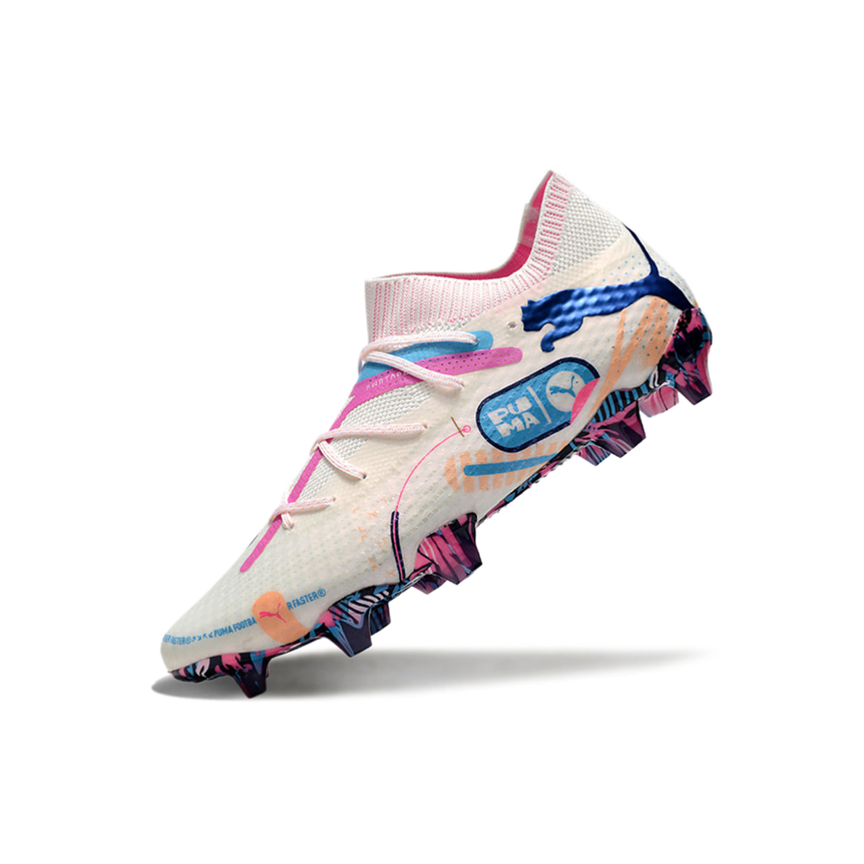 Eleve seu jogo com a chuteira Puma Future 7 FG do "Volume Up Pack". Com um design vibrante nas cores branca, azul e rosa, essa chuteira é a combinação perfeita de estilo arrojado e tecnologia de ponta.
