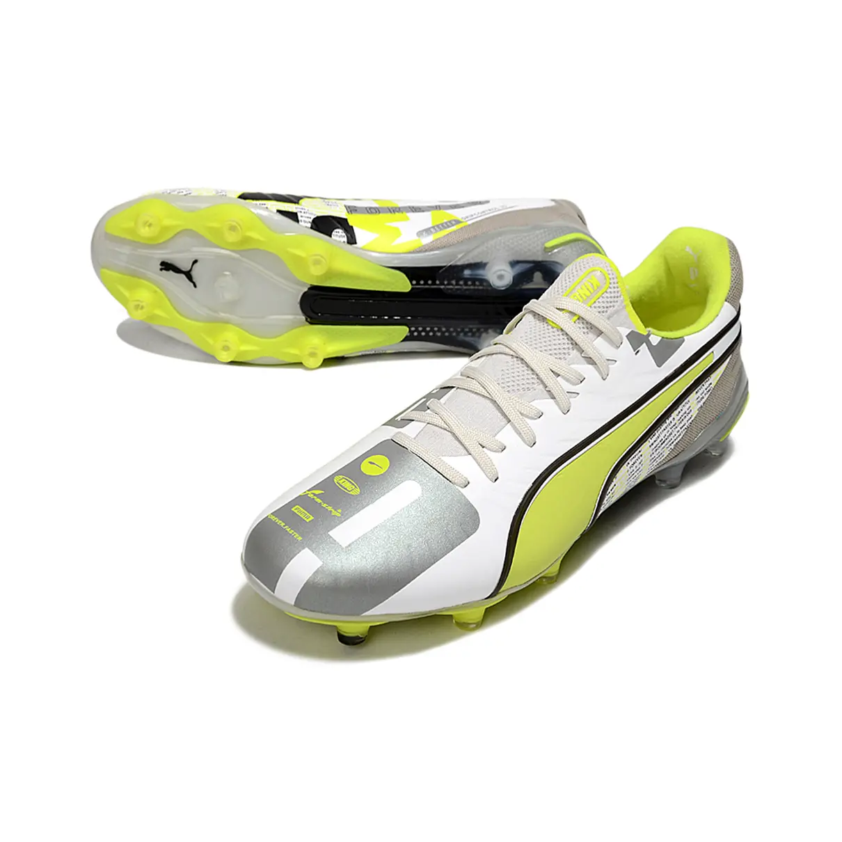 A lendária Puma King retorna em sua versão mais moderna: a King Ultimate FG “Forever” – Prata e Amarelo. Um verdadeiro símbolo de tradição reinventado com tecnologia de ponta, combinando estilo, conforto e performance em alto nível para os gramados naturais.
