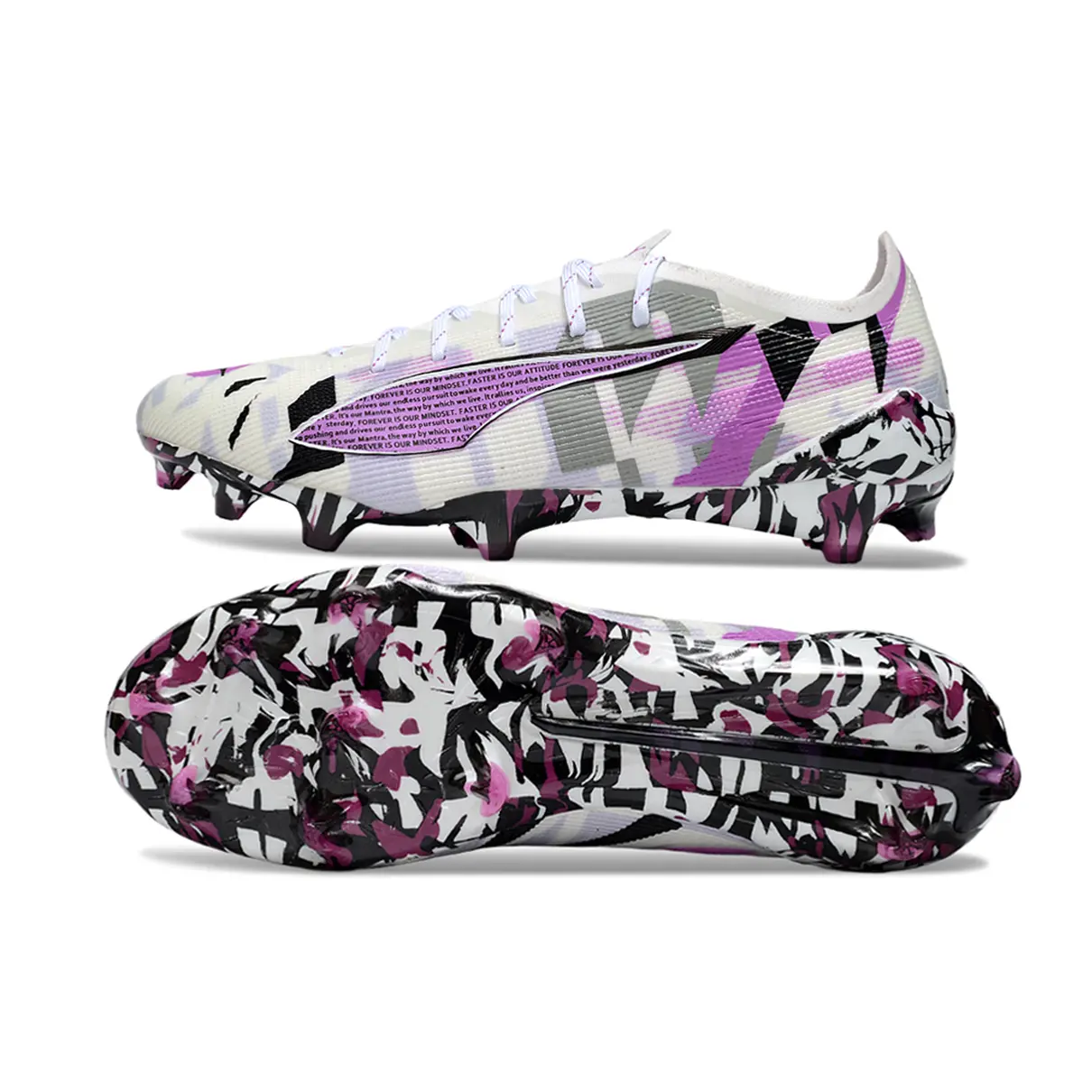 Chuteira Puma Ultra 5 Ultimate FG – Campo – Branco, Rosa e Preto