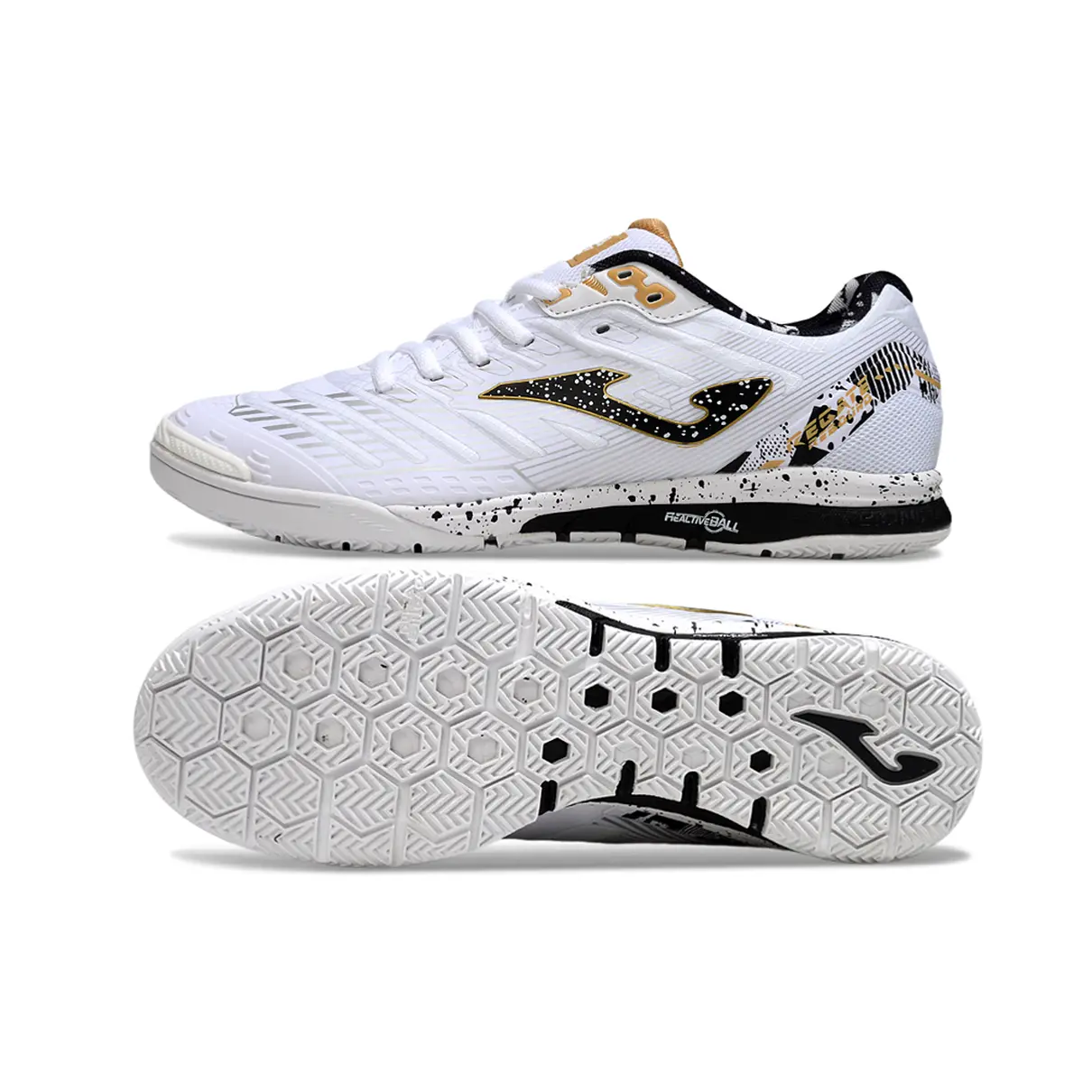 A Chuteira Futsal Joma Regate Rebound IC Branca, Preta e Dourada é ideal para jogadores que buscam estilo, conforto e desempenho em quadras indoor. Com cores sofisticadas em branco, preto e dourado, este modelo combina design moderno e tecnologia avançada, garantindo destaque durante as partidas.