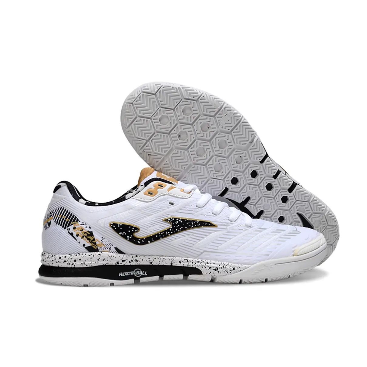 Chuteira Futsal Joma Regate Rebound IC Branca, Preta e Dourada