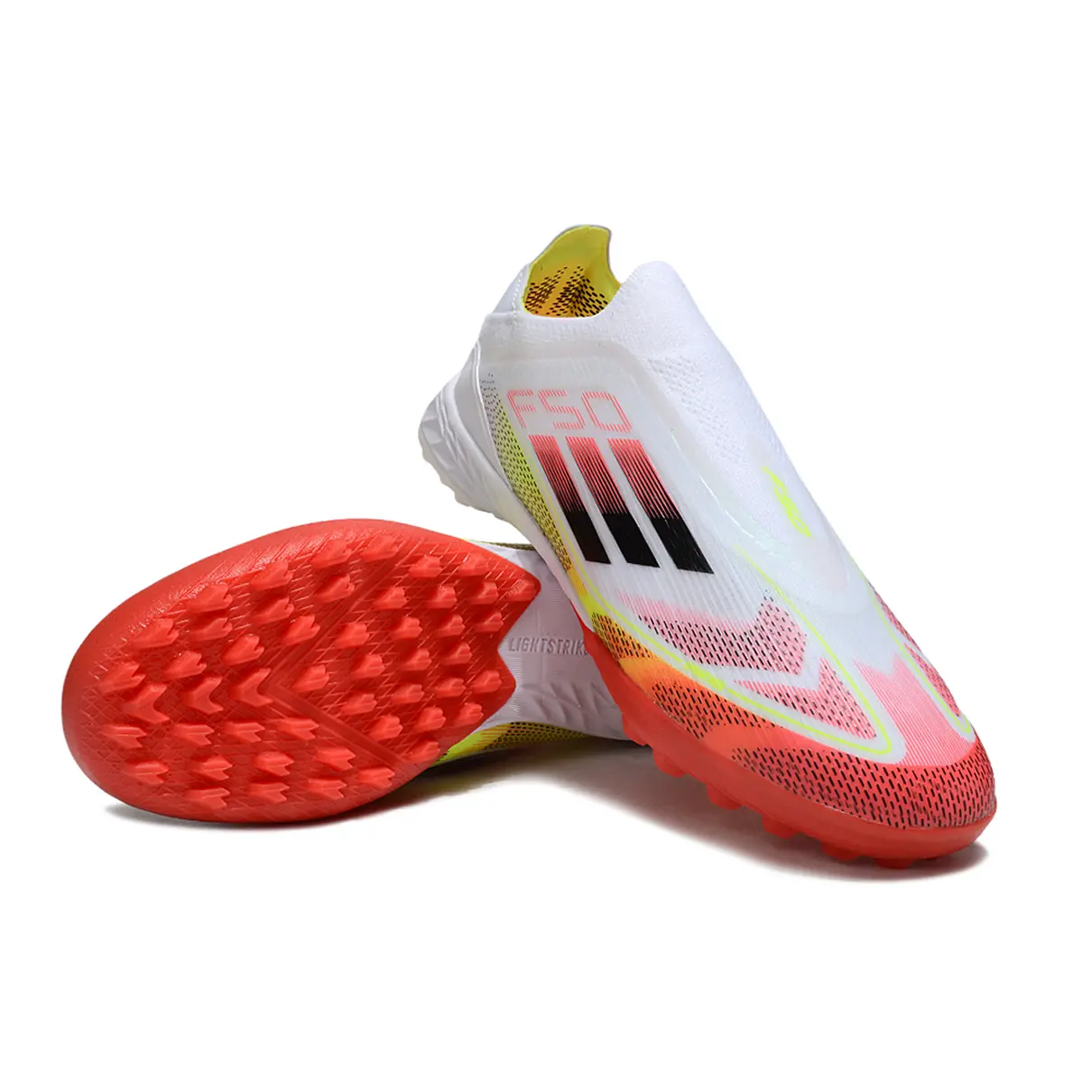 A Adidas F50 TF chega com um visual marcante nas cores branco, vermelho e amarelo, unindo modernidade e tradição em um só modelo. Projetada para jogadores rápidos e decisivos, ela entrega conforto e explosão em cada jogada.