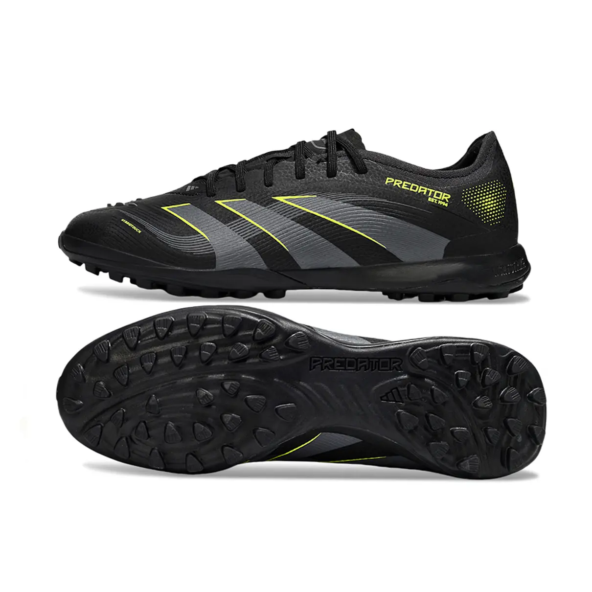 Domine o jogo com estilo e agressividade. A Predator Elite TF na combinação Preto e Verde une precisão, estabilidade e visual ousado. O verde vibrante contrasta com o preto profundo, criando uma identidade forte dentro e fora de campo.