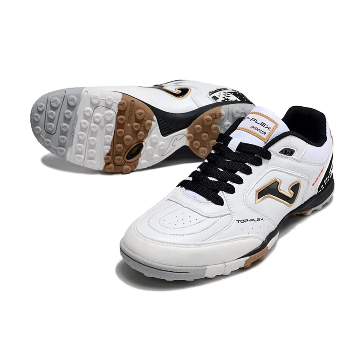 A Chuteira Society Joma Top Flex Rebound TF Branca, Preta e Dourada é ideal para jogadores que buscam conforto, desempenho e estilo sofisticado em campos de society e gramados sintéticos. Com design elegante em branco, preto e dourado, este modelo combina tecnologia avançada e visual moderno, garantindo destaque em todas as partidas.