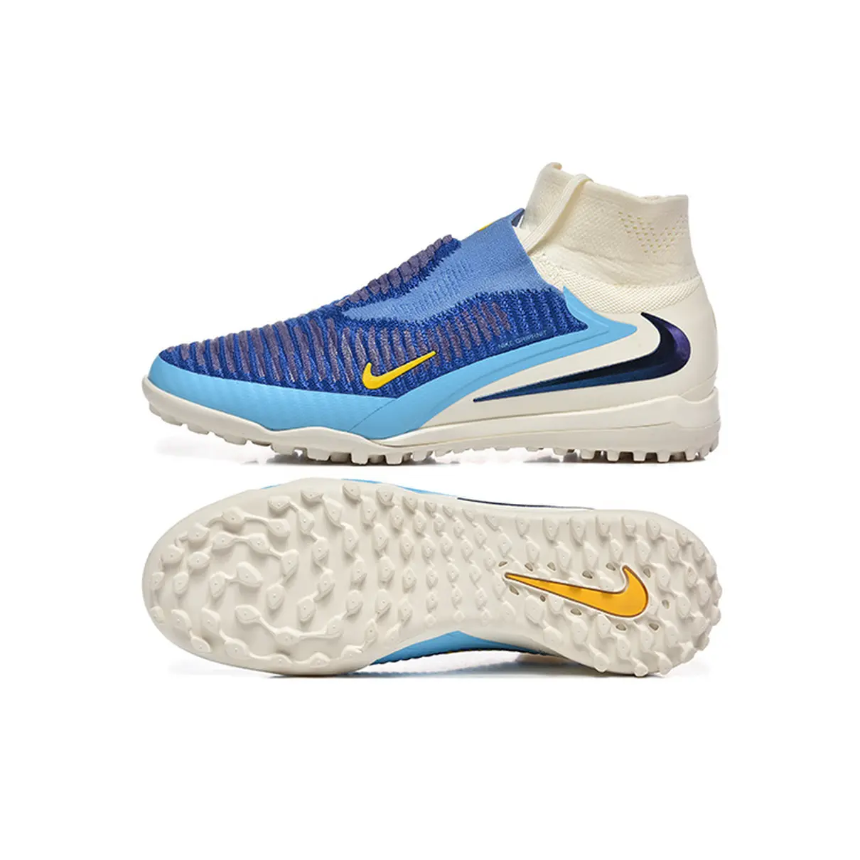 A Chuteira Society Nike Phantom GX 6 DF Elite TF Branco e Azul “Fear Nothing” foi criada para jogadores que jogam sem medo — aqueles que controlam o jogo com precisão, confiança e criatividade em gramados sintéticos.