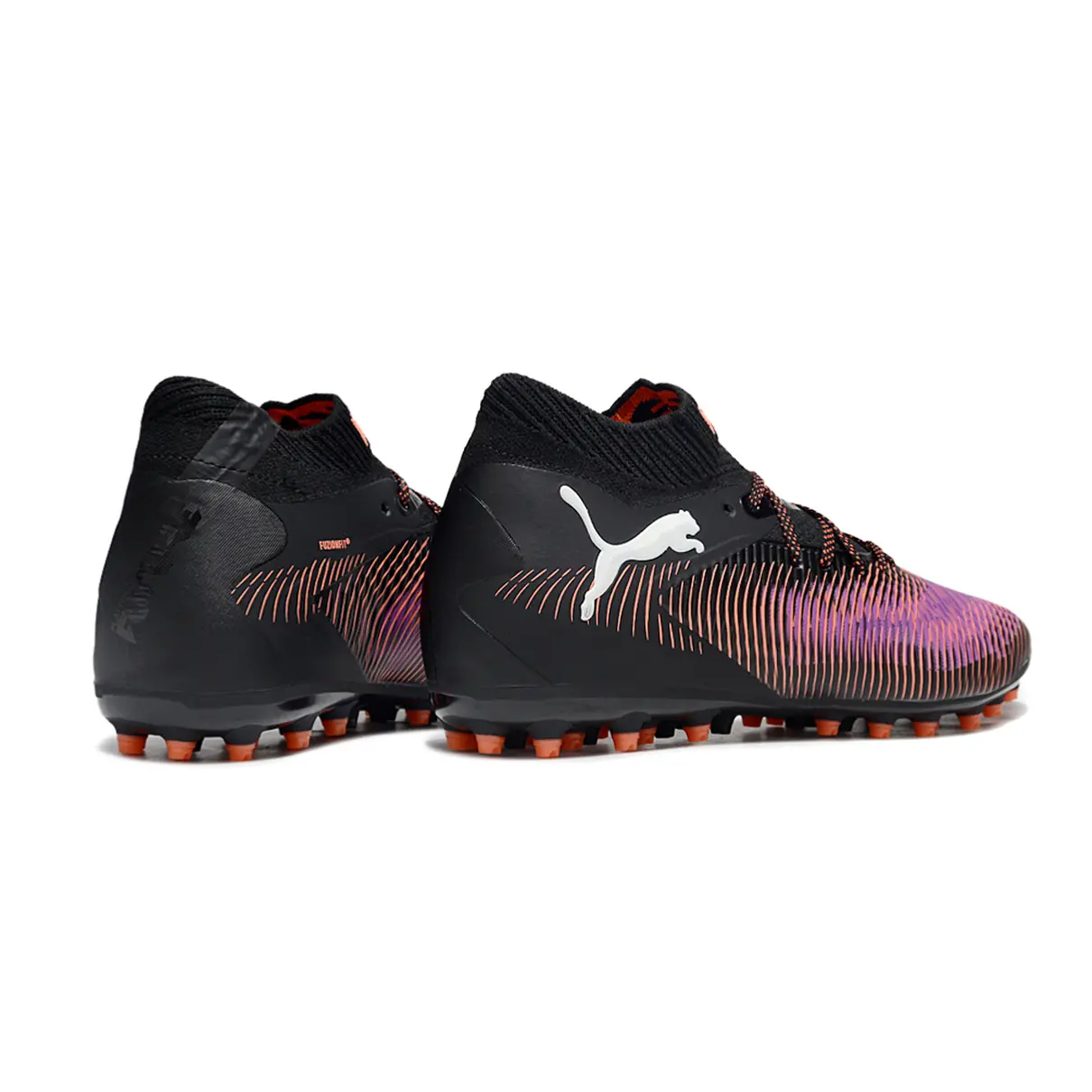 A Chuteira Society Puma Future 8 MG Preta, Vermelho e Roxo foi desenvolvida para jogadores que querem combinar agilidade, precisão e estilo em gramados sintéticos. Com a exclusiva tecnologia FUZIONFIT+, o cabedal elástico se ajusta perfeitamente ao pé, proporcionando suporte firme, conforto e liberdade de movimento em cada jogada.